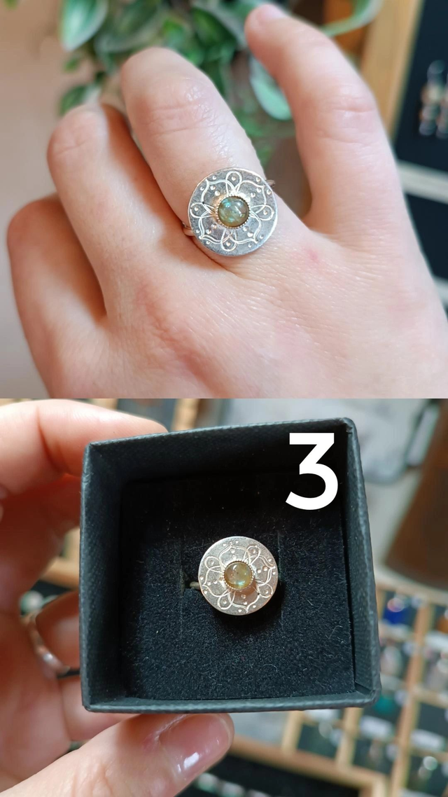 Découvrez une bague ronde martelée à la main, pièce unique au style ethnique. Chaque bague est façonnée individuellement avec une finition élégante en plaqué argent. Le plaquage est une bonne épaisseur (entre 15 et 20 microns) ce qui permet de pouvoir se laver avec sans souci.