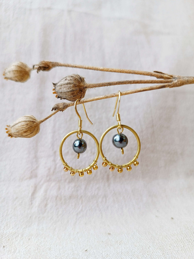Découvrez ces boucles d’oreilles uniques, fabriquées à la main à partir de fil de laiton finement tressé et agrémentées de perles en laiton. Les attaches sont en acier inoxydable et ne noircissent pas la peau, pour un confort optimal toute la journée.