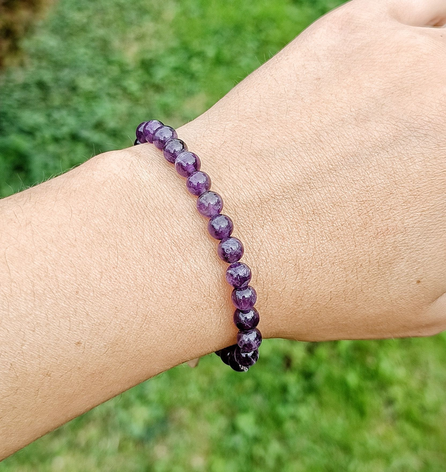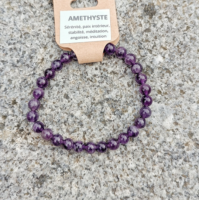 Bracelet élastique en Améthyste. C'est une pierre naturelle aux nuances de violet. Les pierres (6mm) que je vous propose sont naturelles et non modifiés.