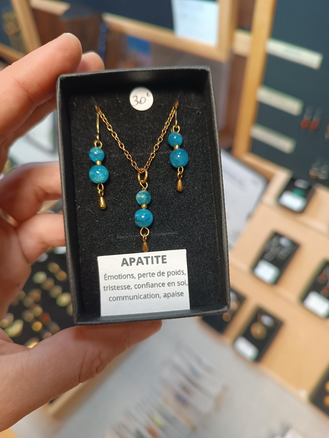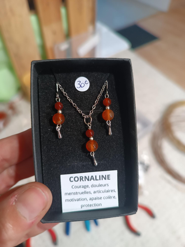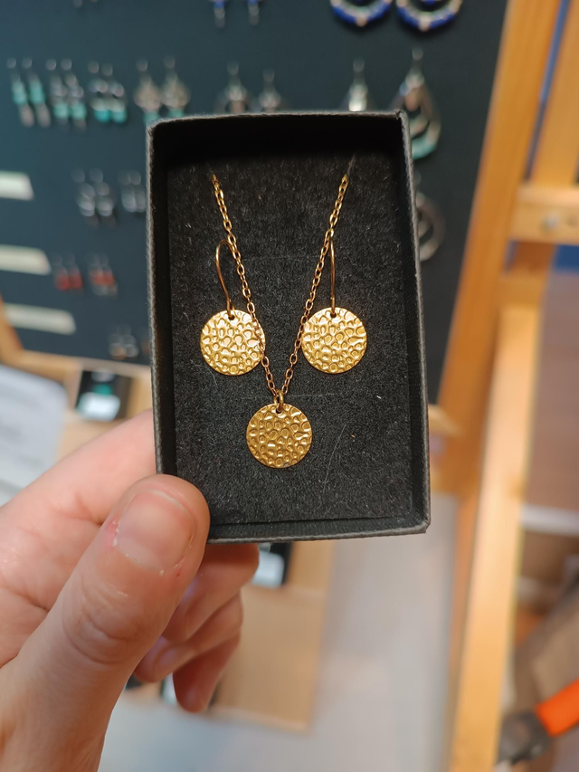 Ensemble de boucles d'oreilles et collier, fait main avec des pierres naturelles ou laiton martelé.